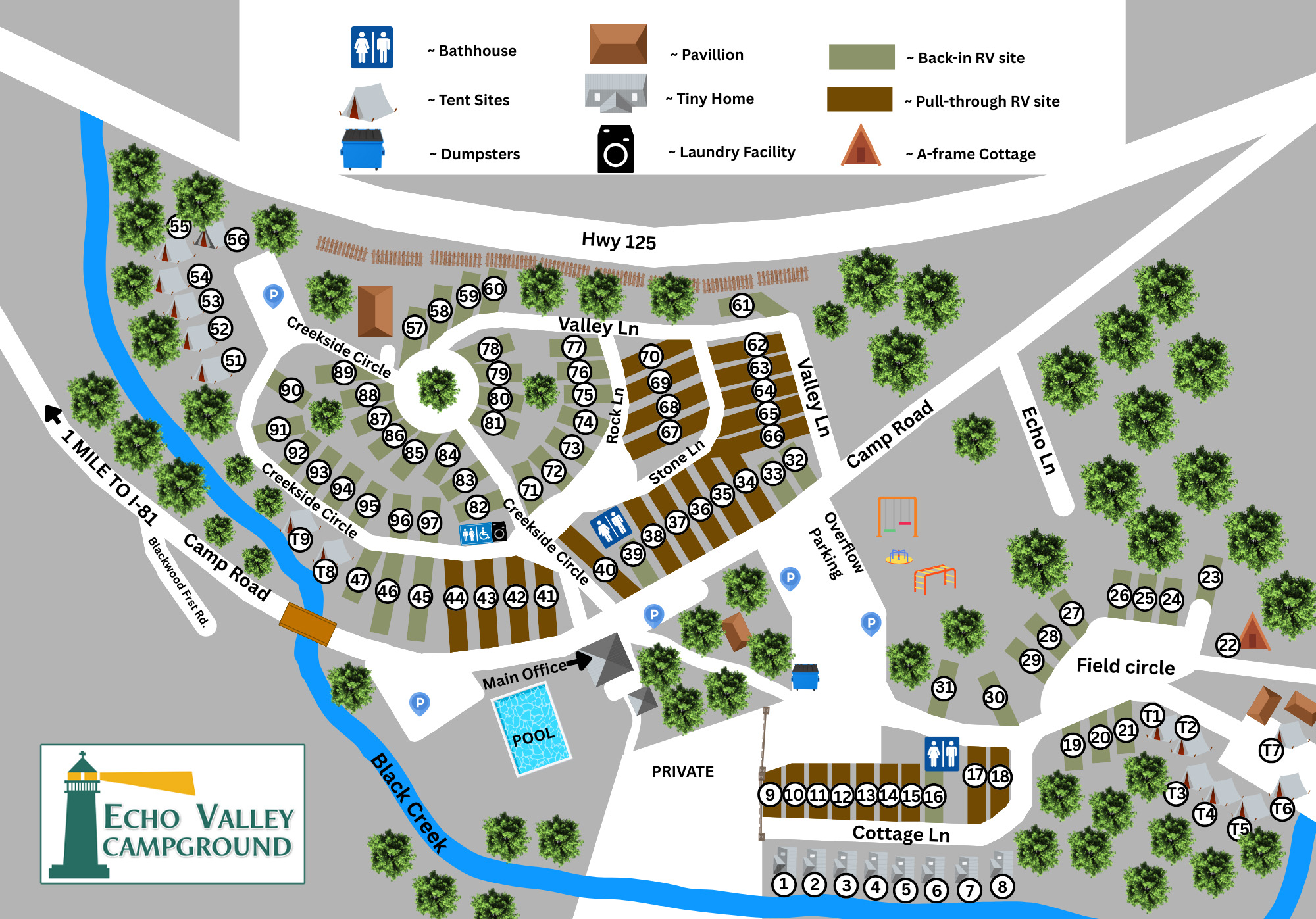 For your convenience, you will find a copy of our campground map below so you can familiarize yourself with the layout before you visit!